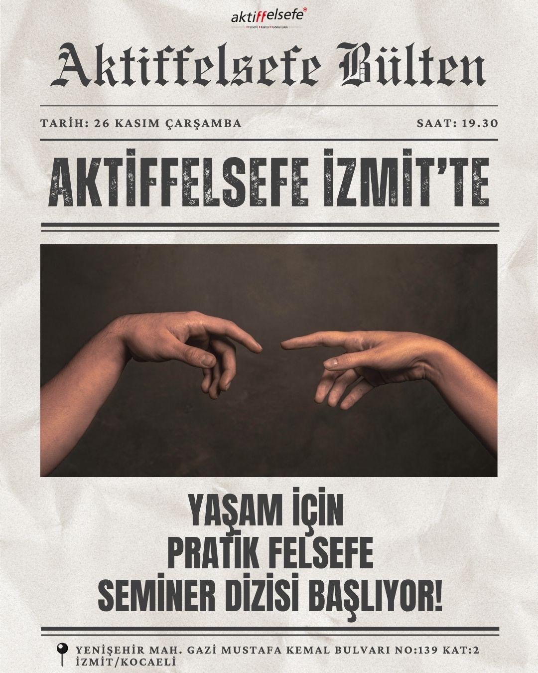 Yer: Aktiffelsefe İzmit – Yenişehir Mah. Gazi Mustafa Kemal Bulvarı No:139/2 İzmit-KOCAELİ (Yenişehir Tramvay durağından ulaşım sağlanabilir. İletişim için Whatsapp: 05382462946 )